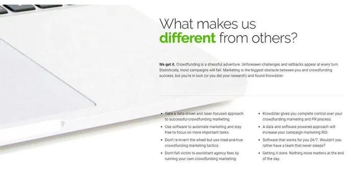 You can save tons of money through professional crowdfunding marketing services without the need for any price tag. Moreover, it is a compelling crowdfunding platform that leading marketing agencies also use for their clients. If you have an idea, then Krowdster is for sure going to help like Bondora and Kickstarter.