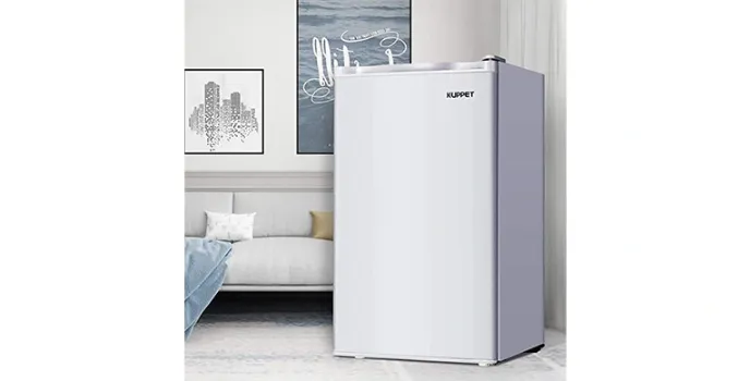 The Kuppet 3.2 Cu.Ft. Refrigerator and Freezer blend the modern attitude with cutting-edge refrigeration technology, the grips are suspended, polished structure suits any home. This small refrigerator accentuates a can dispenser along its opening to assist maintain stored beverages arranged and within susceptible reach.