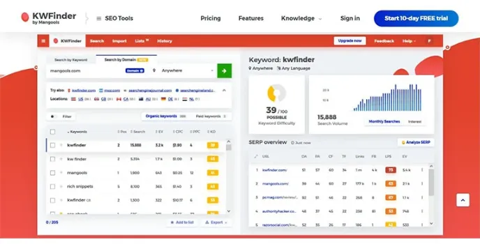 Mangools is a suite of super easy-to-use SEO tools. It includes KWFinder, SERPChecker, SERPWatcher, LinkMiner, and SiteProfiler (+ an SEO browser extension!). So it's not just one tool, Mangools is a brand and consists of 5 tools (bundle) including KWFinder.