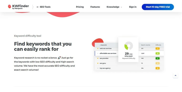 KWFinder is a super easy tool for finding the unique keywords which are best for a content marketing business. It is high-quality support that can research multiple research options. Like the best youtube SEO tools, the KWFinder keyword tool is perfect for beginners because it is the cheapest option.