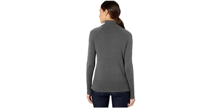 ToBeInStyle and Goodthreads turtleneck sweaters are similar to Lark & Ro sweater's feminine style shaker stitch sweaters.