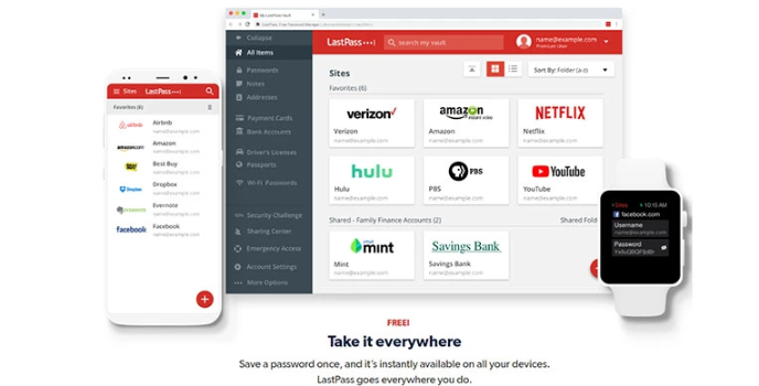 Lastpass remembers all your passwords, and the best part about it is that it is a free password manager, but you need to pay $3 for premium up-gradation per month. Family users can upgrade their Lastpass versions for better services, sharing, and easy access to all the devices present; it also includes tools to keep your kids safe.