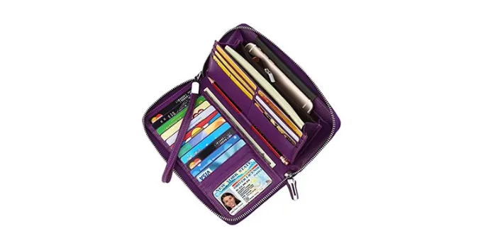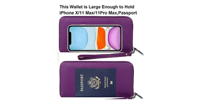 Lavemi is one of the best travel wallets, designed for women. It has a leather lining, which makes it wear and tear-resistant. Suppose one is using it as a phone case as well. The wallet is equipped with advanced RFID blocking materials to protect their cards from being misused.