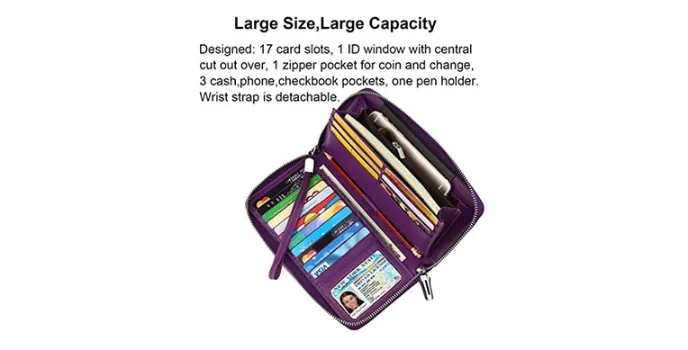 Lavemi travel wallet saves time from rummaging around for currencies when in trouble. You can place your phone if its size matches that of iPhone XR/11 Max/11 Pro Max(Phone Size:6.5". It comes with a pen holder as well. The detachable wristlet strap is quite a practical addition to the wallet, missing in other wallets like Tumi, Venture. It makes it super portable and easy to use the product.