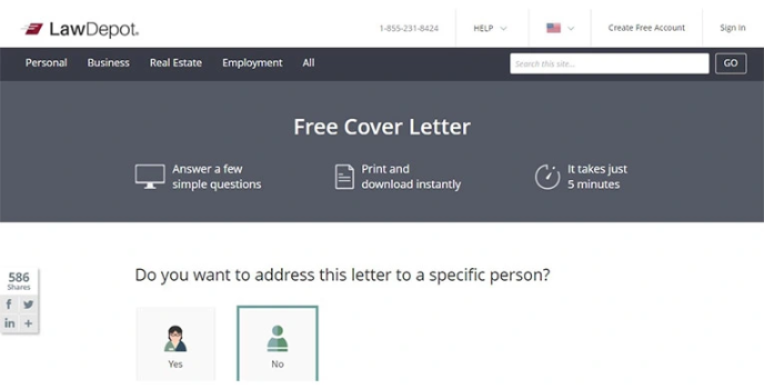 Various online services offer a cover letter to give print and download instantly by giving them a simple question to solve. Also, one can add up a letter to whom you are addressing, being it a specific person. The whole process takes less than 5 minutes to create your free cover letter where you can start the agreement. It provides detailed information and allows you to instantly print and download after answering a few simple questions.