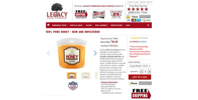 In this modern technical and artificial world, getting high-quality and pure ingredients and products is becoming hectic work for an individual to browse and have them, And Legacy food storage is the most excellent choice for all of them as it offers the 100% fresh and pure honey which is extracted from the hives directly. They are ripe with natural enzymes and pollen. When you add this pure honey to your emergency supplies increases the taste of food, you would be hard-pressed to make it last.