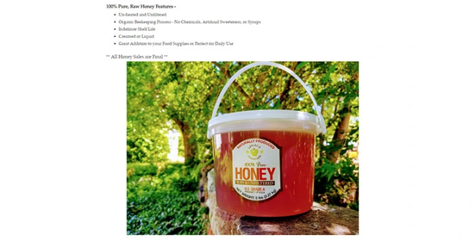 - Chemical and pesticide free honey