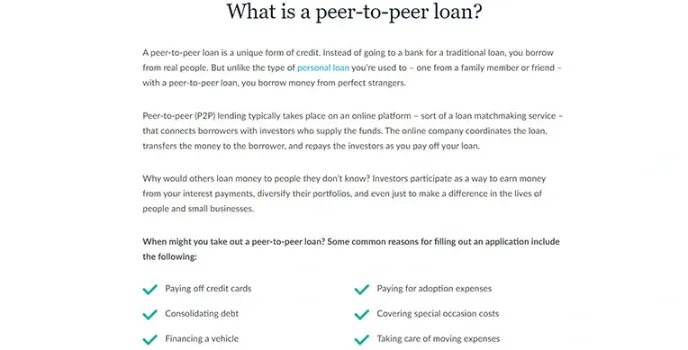 The peer-to-peer lending for investors platform helps borrowers find different types of loans, all through a lending marketplace. The platform is not a lender itself, similar to Funding Circle and Pay Off, and multiple lenders participate for your business on this platform. This platform is one of the largest peer-to-peer online exchanges, and its main focus is to bring borrowers and lenders together to come to a consensus in terms of loans.