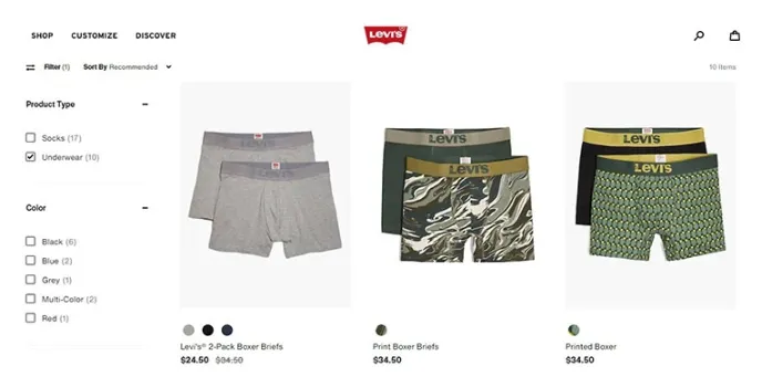 Levi's - Smart Product Filter Options For Easy Online Shopping