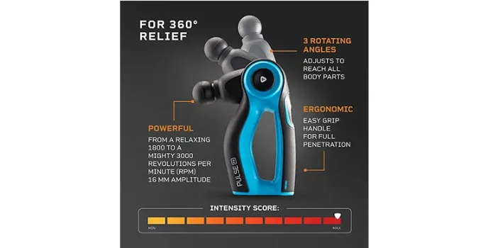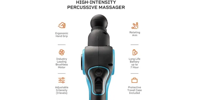 The massage equipment by LifePro includes three pre-programmed, constant, variant, and increasing operating modes. It also comes with a pause button to stop and pick it from where you left and have complete control over the massage gun. The Pulse FX build quality is top quality with 16mm penetrating amplitude, and you feel perfect, not like cheap massage guns. The battery is securely placed in the body with all accessories.