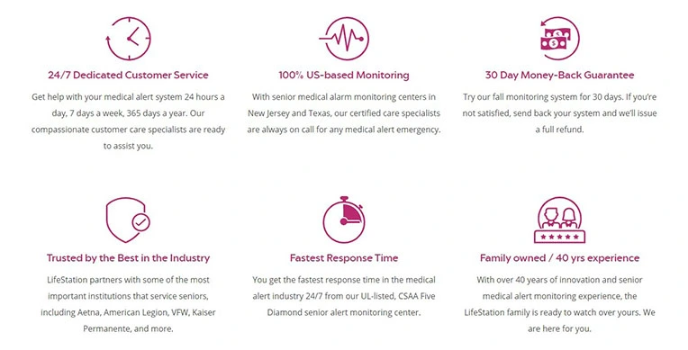 It appoints senior medical alert experts for treatments and has a water-resistant button to protect from damage. It also had the facility of a 30-day money-back guarantee.