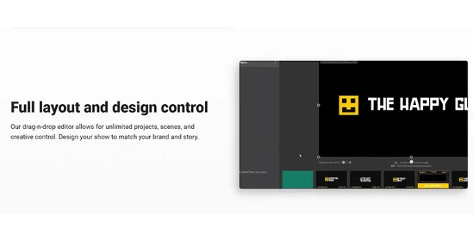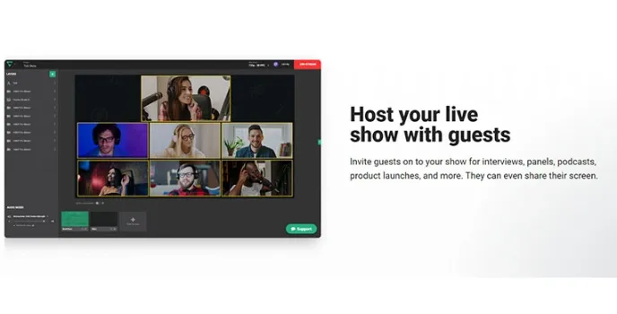 The screen sharing software comes with a drag and drops editor that allows for unlimited projects, scenes, and creative control. You can easily design your show to match your brand and story and connect and mix remote guests. Moreover, the software comes with quick setup functionality and industry-wide live stream analytics that you can trust to build the best influencer campaigns.