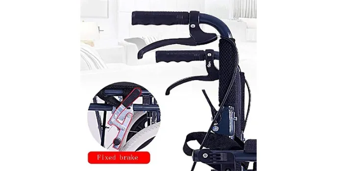 The double brakes and driving handbrakes are convenient for users, and rear brakes are suitable for the caregiver. Its weight is 14kg and is designed for the elderly and the disabled. It can take a maximum load of 200kg as well.