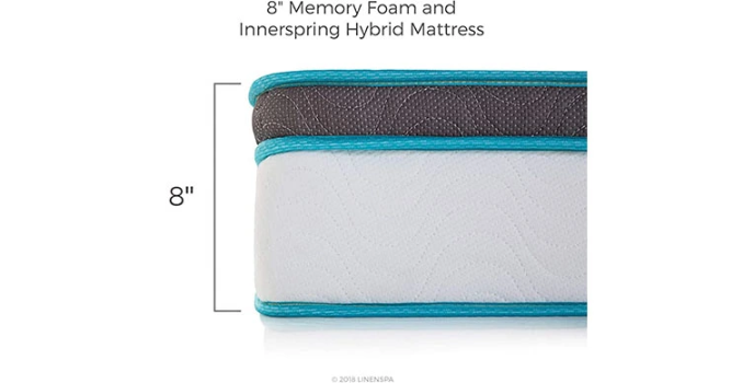 The Linenspa mattress maintains balance with spring coiled technology and is highly advisable if you've kids at home. It's a sturdy, firm, memory foam mattress alleviating pain and a responsive system to avoid sinking on it.