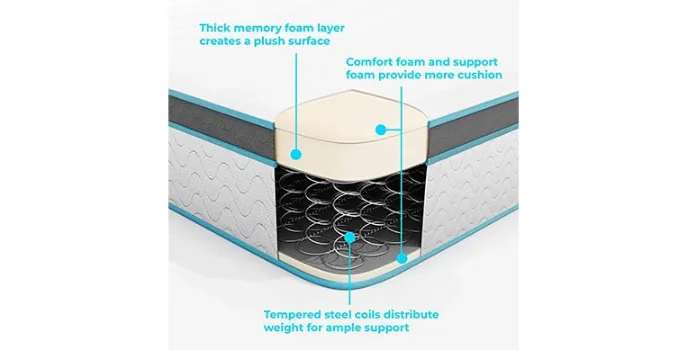The premium mattress comes in various sizes, including twin XL full short queen king and California king. It is a thick layer of memory that comforts the user from all sides, giving them good shape when they sleep. It helps in eliminating all kinds of pressure points and increases comfort. The package includes a compressed and well-shaped box convenient for delivery, but it needs some time to spread all over the bed. This method has a ten-year Limited full warranty stop; the user might expect a normal packaging process that may leave small brown flakes called carbons in the mattress packaging. It comes with a pause hybrid design and memory foam with a comfortable form and an innerspring.