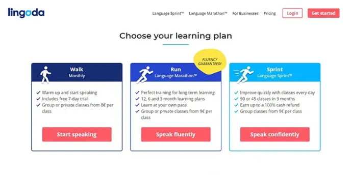 Lingoda learning online platform can easily help provide a monthly subscription in a few dollars, which can be seen on-site with monthly payments and provides a free 7-day trial in learners' basic knowledge. Similarly, the best typing program platform is also available to improve typing speed for streaming content businesses. The marathon courses come up with a commitment time to upfront and earn a cashback in just 12 months of option, providing a one-time upfront payment and giving a 7-day free trial.