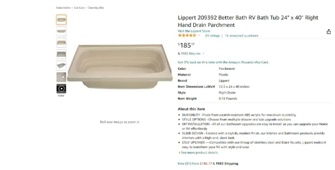 Lippert - Wide Variety Of Compatible Bathtubs For RVs