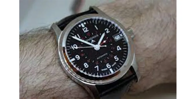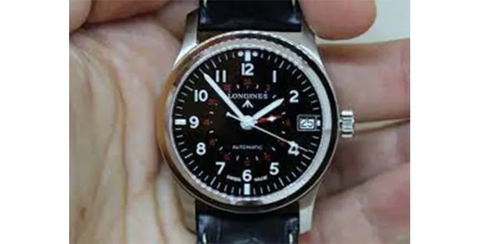 A classic Longines Heritage GMT aviator watch has integrated with automatic swiss quartz movement, data, fixed bezel features allowing users to operate wristwatches effectively.