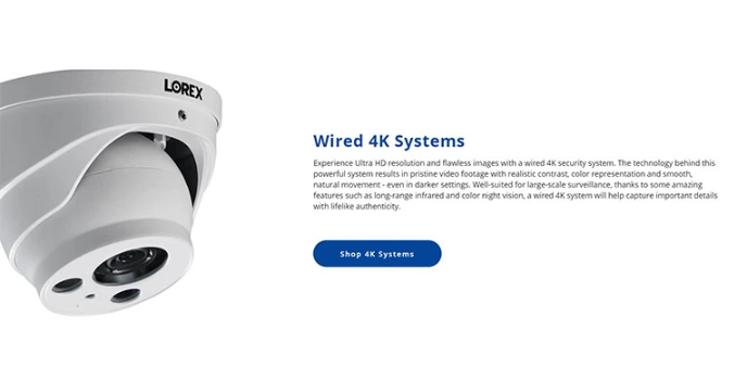 Lorex offers the wired 4K with ultra HD resolution that provides clear videos even in the dark and is mainly for large business or export houses. Further, the PTZ (Pan -Tilt-zoom) camera acts as multiple cameras together.