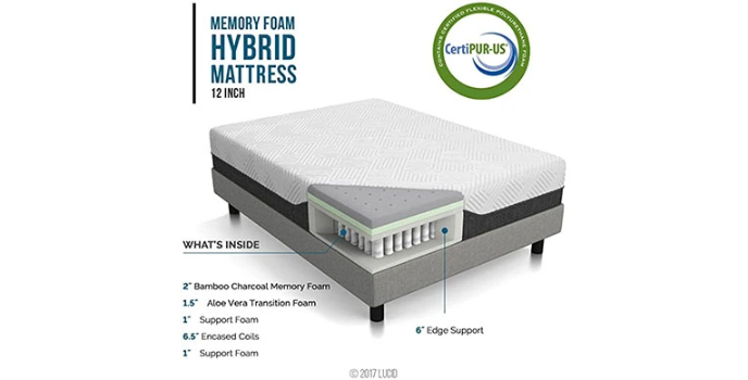 Lucid Mattress - Bamboo Charcoal and Aloe Vera Infused Hybrid Mattress