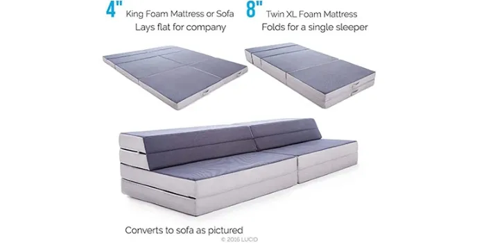 Enjoy the comfort and convenience by not taking much space in the dorm rooms and small areas by choosing the portable design lucid sofa, which is stuffed with a high-quality medium-firm foam that provides maximum support and comfort while sleeping. Its unique double-stitched handles design makes this topper makes it easier for the folding of the mattress.