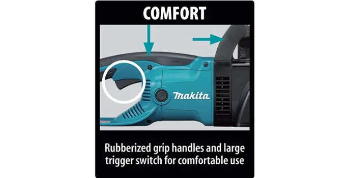 Makita provides for this unique electric chain saw that comes with a tool-less blade and makes for the best electric chain saw in their opinion. The feature of the tool-less blade along with chain adjustments enables convenient operation along with easy maintenance. The rubberized grip handles have been carefully and ergonomically designed for the ultimate comfort during usage.