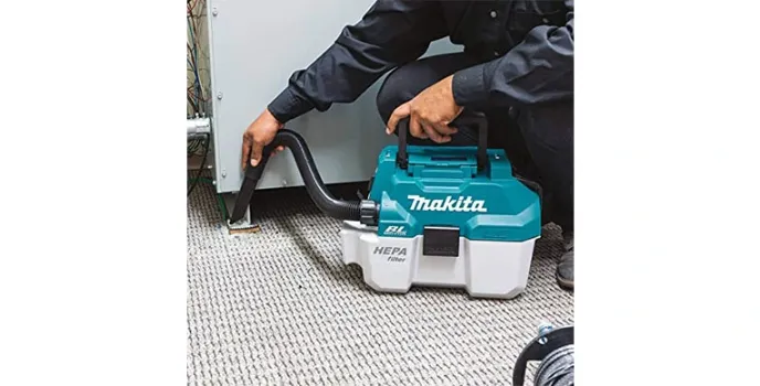 Makita XCV11Z is one of the best dry wet vacuum cleaners that captures 99.97% of dust particles and microns with its efficient HEPA filter technology.