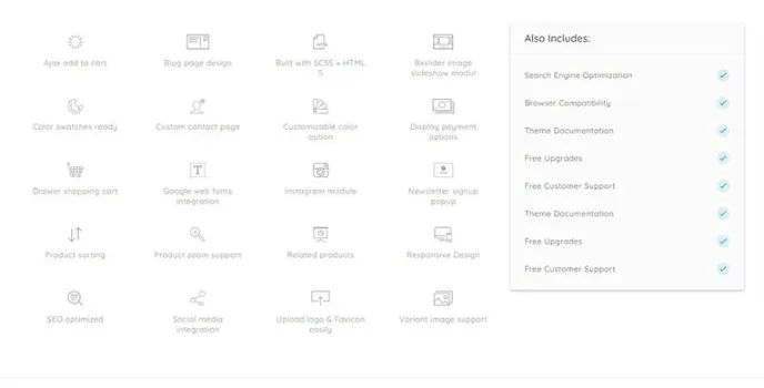 Its theme documentation and Ajax shopping cart make it an easy and one-touch step for customers to shop.