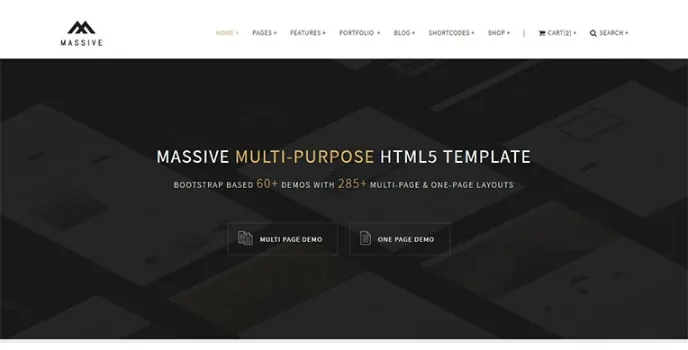 Massive makes for a great and effective HTML template that provides designs for over 300 pages and includes over 60 variations for home pages. It is a bootstrap-based multi-purpose theme and is powered by Gulp And CSS. It is an easy-to-use theme that helps create some of the most beautiful works and designs.