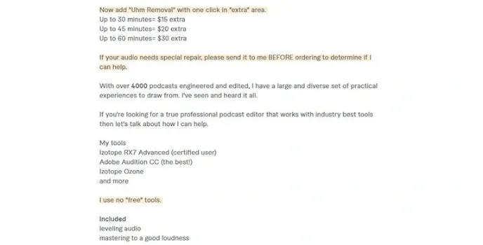 This service provides the feature of leveling audio with noise reductions. It also removes unwanted background noises. Mattvopro makes your podcast completely flawless and perfect for the audience.