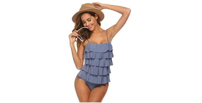 If you are looking for a tummy control bathing Suit for plus size women, you chose the Maxmoda Swimsuit, which offers various features of a one-piece swimsuit, including a durable and quality fabric, which is ideal for plus size women. It is a one-piece swimsuit, which is suitable for different parties. It also includes a cute design with a layered ruffle. It has a stylish swimsuit for a flattering and comfortable fit.