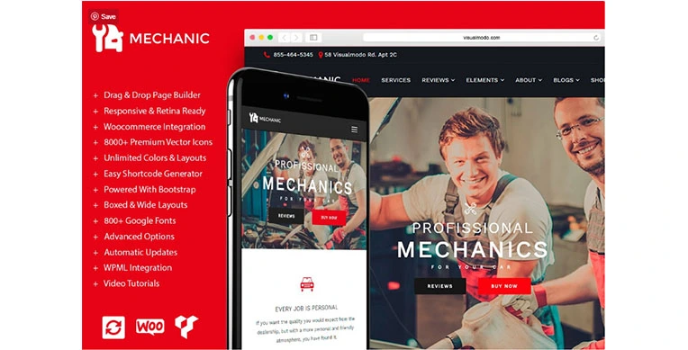 With the inclusion of elements like blog styles, icons, google maps, pie charts, text boxes, dividers, and much more, the service proves its versatility. Whether you wish to create complex layouts instantly or ease off your front-end work, you can use this service for all of your requirements. Design the website to the very last detail as you get access to unlimited customization options. Be it logos or custom footers, get the greatest features of all time with a mechanic workshop theme.