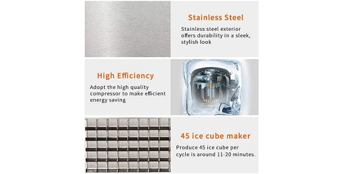 The Mecy commercial ice maker includes a supply hose and then a hose that requires a water supply drain as ice cubes are already included for convenience. It is very easy to adopt a high-quality compressor to make an effective energy-saving and low noise pump with a durable foundation that continuously draws water from the tank to evaporate it.