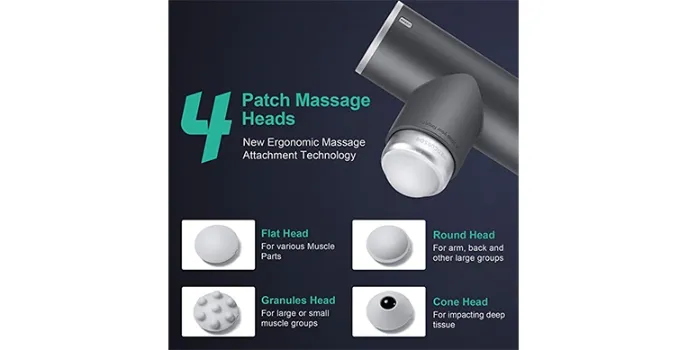 The operations of the product are super simple. A single button manages the working of the deep tissue massage gun. You can long-press the Power Button to start and short press the same button to select the required speed. 4 different massage heads are attached to the product.