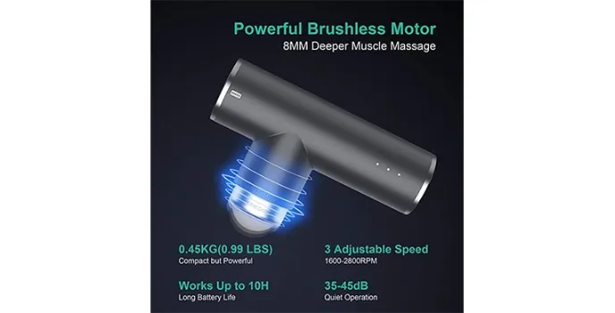 The mini massage gun has three intensity levels from 1600 to 2800 RPM. with 8mm amplitude; the gun can reach out to give you a deep tissue massage for your relaxation. The muscle and joint relief provider has attracted immense positive reviews from the users.