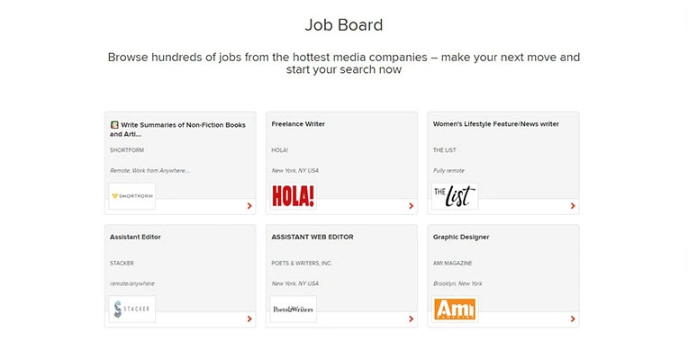 Mediabistro is a freelance website for media professionals, employers, and other freelancers. It helps offer tons of business services and career services for those looking to enhance their resumes and other job applications. The membership of Mediabistro helps the seekers learn how to pitch jobs, provide editorial calendars for all the famous websites and magazines, and offer various online courses. This platform offers tons of job posting packages and unlimited plans for employers, including its profile. It makes use of an online dashboard to manage job posts and applications. Like other platforms such as Writer Access Freelancing Platform, the MediaBistro freelancing platform provides customized recruiting services and employer branding services to the national network of talented full-time and freelance professionals. It also offers a membership plan for people looking for a job by providing unlimited access to informative online courses, freelance tools, and other industry resources and events. Career services like resume creation, cover letters, and Linkedin edits are available at Mediabistro. It also offers a wide selection of job posting packages and customized recruiting solutions. The Mediabistro has an in-house content studio that helps create employer branding content, unlike other platforms like CrowdSource Freelance Platform.