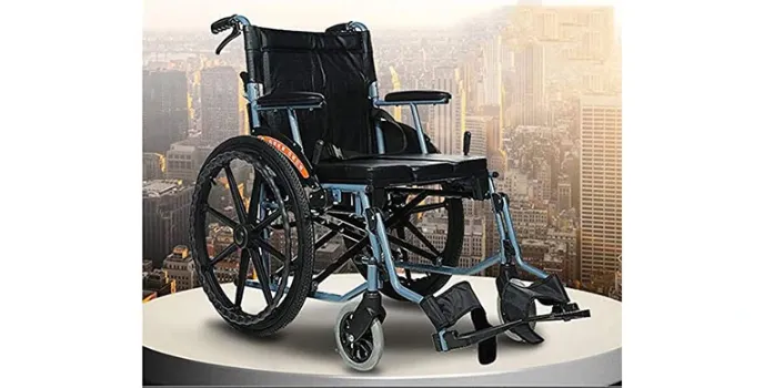 ZYR Wheelchair is easy to use and has a foldable design. It has 3D shock absorbing Pneumatic tires which makes it perfect for uneven roads. Besides, its wheelchairs are safe and quite safe to use.