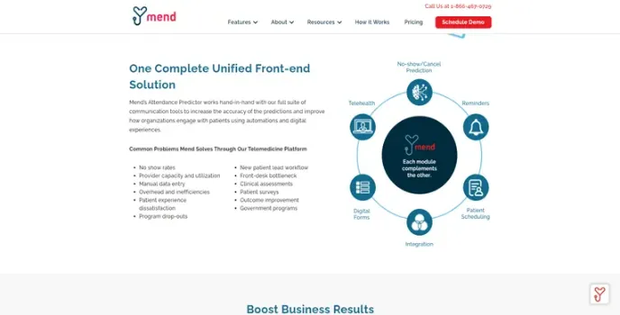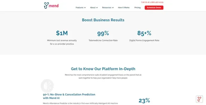 Mend is a leading telehealth software for virtual care. This open-source telemedicine platform has the first AI that predicts no-shows and cancellations. By making patients engaged with the right set of communication tools, it manages high-risk appointments on the schedule that includes emails, phone calls, and automated text. This will automatically change patients' appointments by appointing another doctor or changing time, or canceling for patient safety and time.