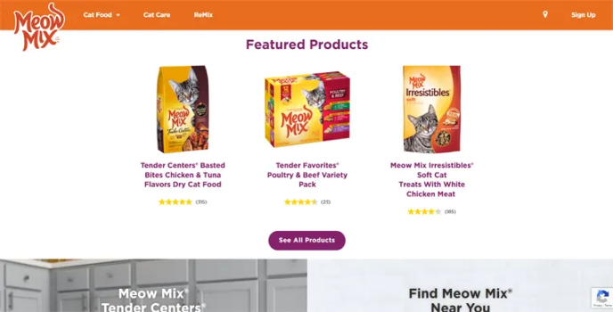 - Meow Mix offers a full line of nutritious cat treats, wet and dry foods, and powerful litter products. Their wet recipes are made with real meat or seafood in delicious sauces to give your cat the lip-smacking taste they crave.
