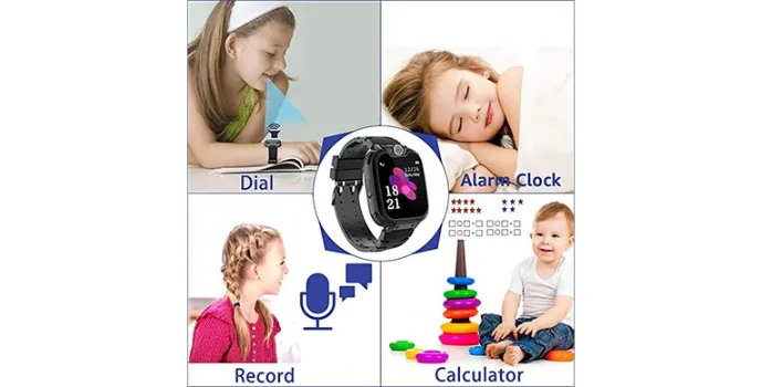 It has an automatic SOS call feature for your kids, and it also has a SIM card and an SD card slot. It also has several features: a music player, seven puzzle games, a two-way calling feature, an alarm clock, a calculator, camera, photo albums, and call recorders.