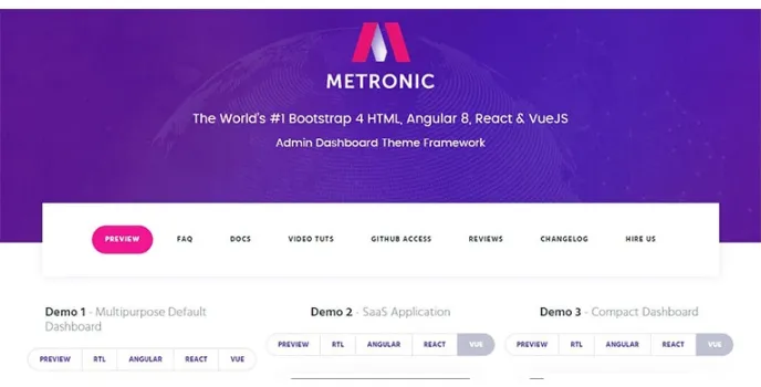 Metronic template is unlike any other HTML template themes available online. It utilizes classic jQuery includes Gulp.js, Sass, Yarn, NPM, as part of its Static and Angular versions, making it powerful yet effective in managing any projects by reducing the time as well as effort spent on them.
