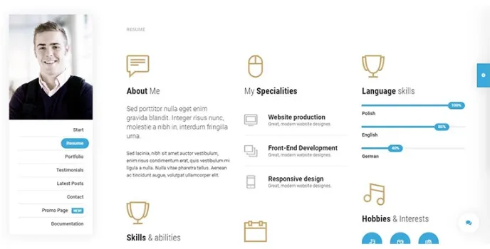 Mi is a powerful HTML5/CSS3 personal template that is based on the Bootstrap 3 template. This provides you 3 types of navigation such as horizontal, vertical, and side panel, from which you can choose the best navigations as per your needs. It offers you a simple and effective resume section that helps present your data in the best possible way.