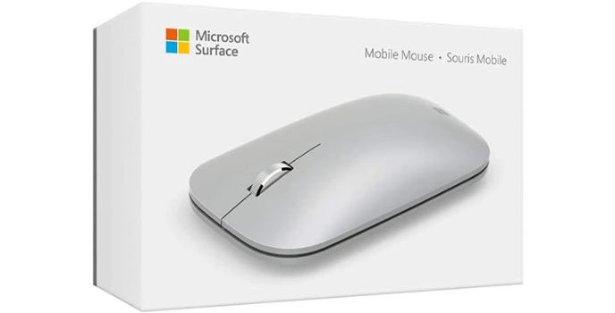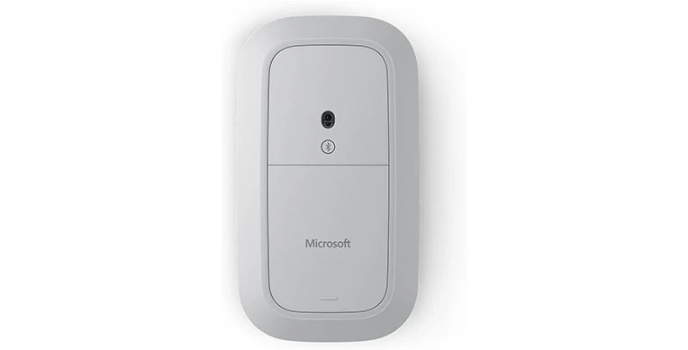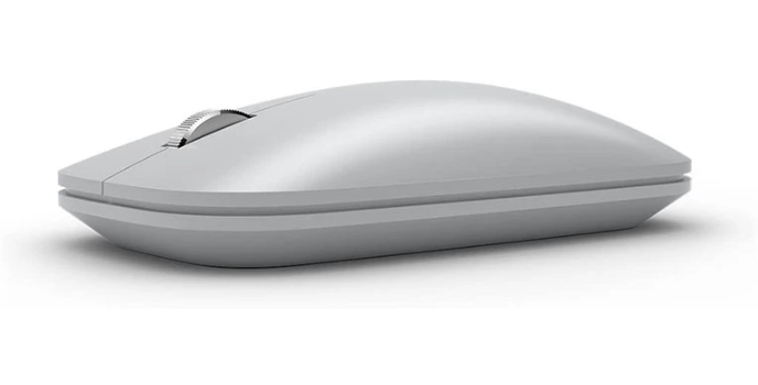 The platinum-colored Surface Mobile Mouse from Microsoft is an ambidextrous Bluetooth mouse built with its Blue Track sensor, which can track on virtually any surface. It features a comfortable, low-profile body and a metal wheel for smooth, natural scrolling. Pair it to your system wirelessly via Bluetooth 4.2 technology and power it using two AAA batteries.