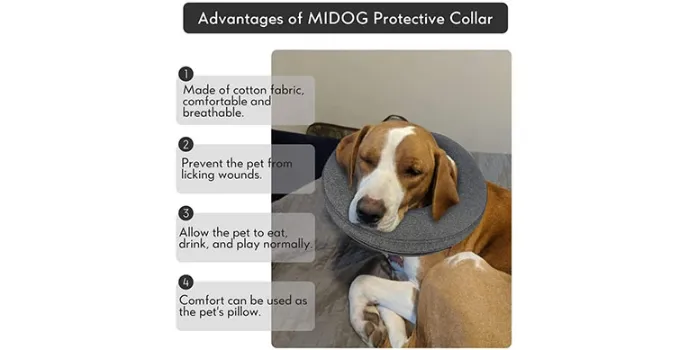 Midog collar is the lateral vision of pets hence not interfering in their eating and sleeping routine and acting as a device preventing pets from licking their wounds or biting their fur, keeping infections and contamination at bay.