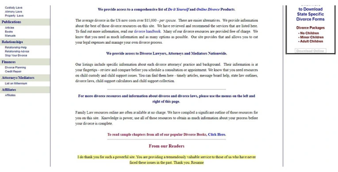 If looking for an online site that can provide access to state laws for your Divorce service, choose Millennium online Divorce service which gives divorce lawyers access to other attorneys and give a well comprehensive online process for accomplishing your Divorce service. It also offers a detailed filing structure with articles and publications for state laws.