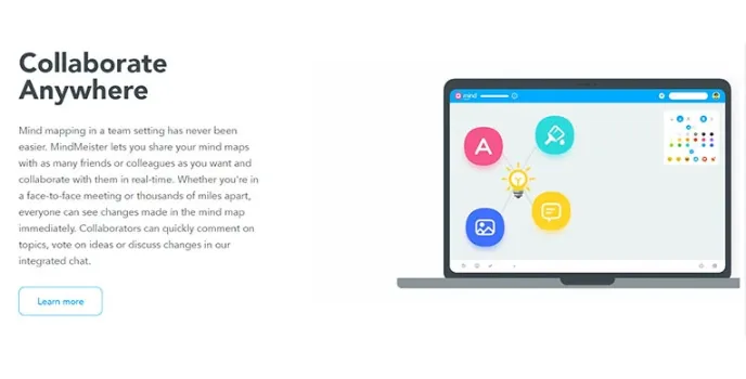 The MindMeister environment allows you to share your mind maps with your colleagues and make your collaboration in real-time. The Collaborators can share their thoughts or comment on topics in no time and communicate with any need for commutation. The voting booth and discussion forum come integrated with the chatroom environment to make the client feel the Mind mapping tool more friendly to use.