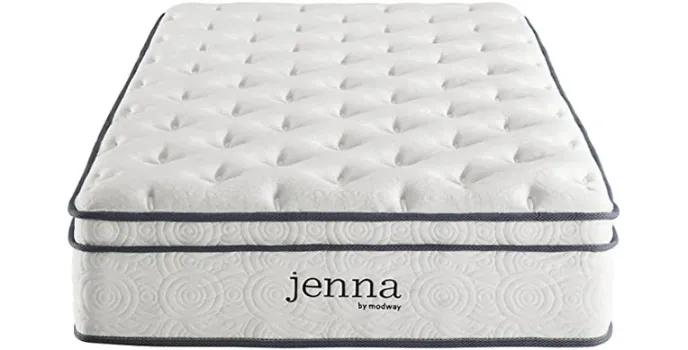 Enjoy exemplary rejuvenated sleep with the innerspring Jenna modway mattress, it features the individually wrapped pocket coils that isolate the motions between sleeping partners and provides great responsive support to the needs of side, stomach, and back sleeping styles, modway Jenna 8.5” tall coils integrated with padded underneath two layers of foam to provide the maximum comfort. The best mattress of modway entire quilted polyester tight-top surface relieves the pressures on hips and backs while delivering the smooth and even feel night after night.