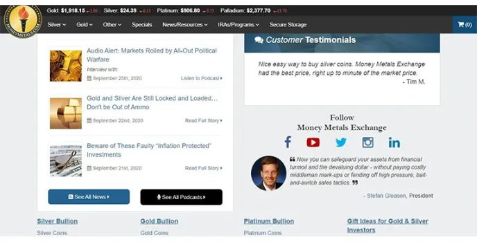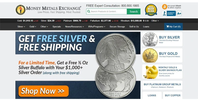 In real-time, Money Metals Exchange IRA account rates are updated. Customers may have orders delivered to a depository account directly. Money Metals Exchange provides pre-packaged gold, silver as well as multigram portfolios for novice bullion buyers. Access and set personalized price updates from its website for live and historical precious metal prices.