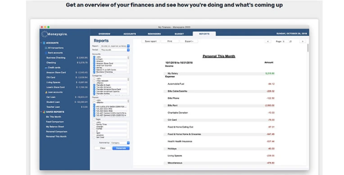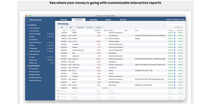It is the personal finance software that is a fully customized financial management tool. Moneyspire helps in seeing all the balances and transactions in one place with many details needed.