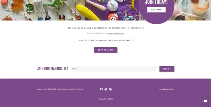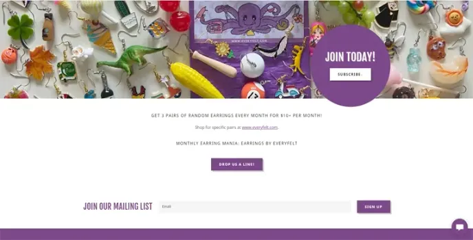 - Subscription service services provided to deliver earrings monthly
